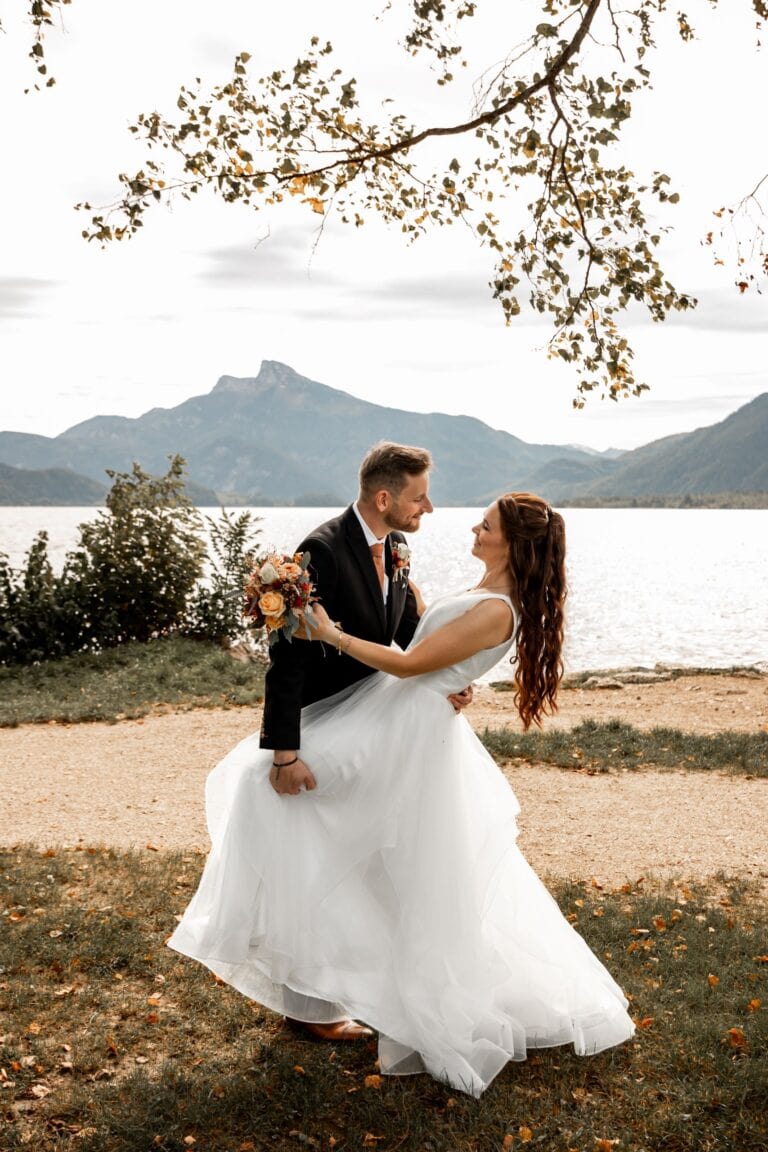 Die Probe findet in unserem Studio statt. Am Hochzeitstag Anfahrt rund um den Wolfgangsee kostenlos (ab 200 €)